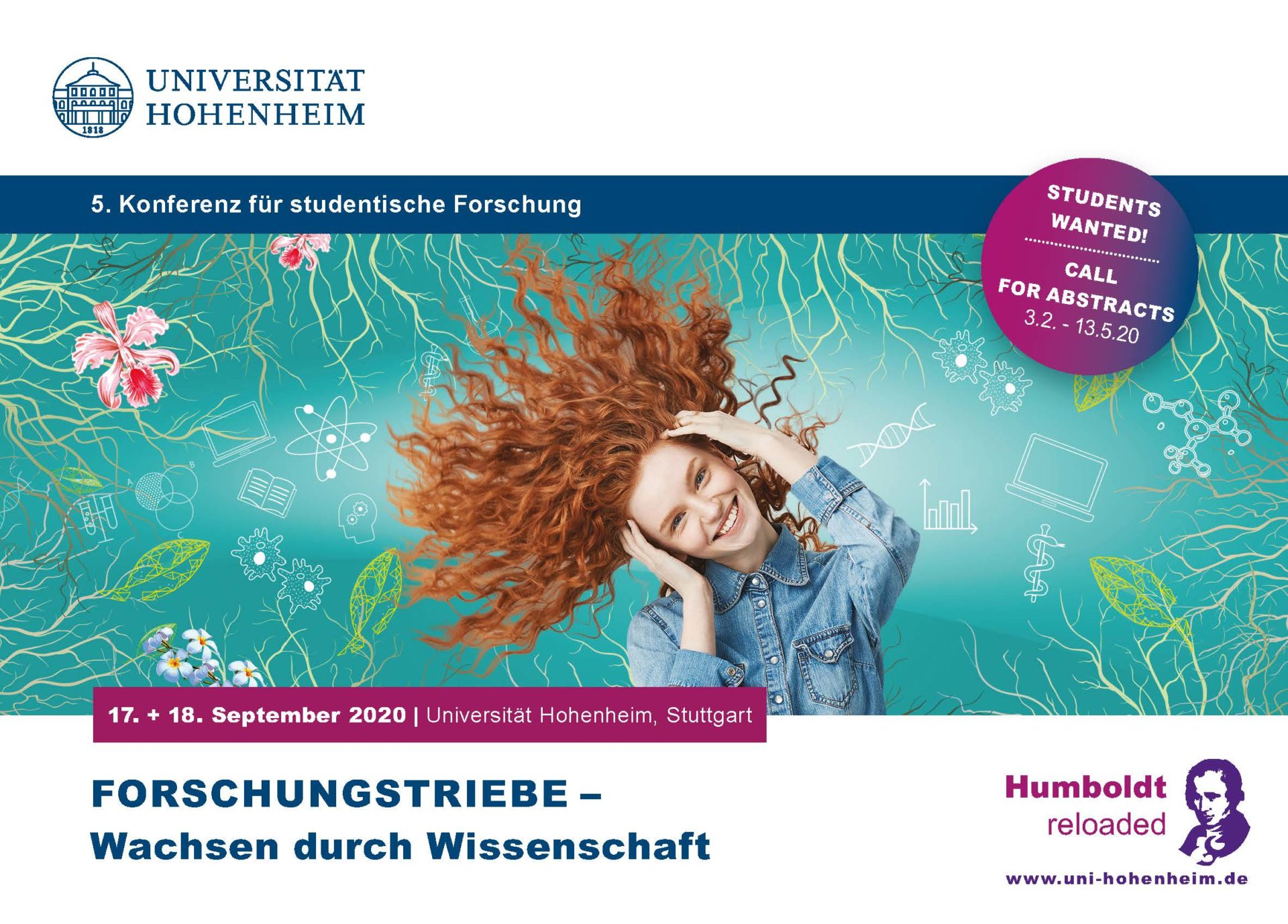 Unter dem Motto „Forschungstriebe – Wachsen durch Wissenschaft“ können Studierende aller Fachrichtungen am 17. + 18. September 2020 Ihre studentischen Forschungs- oder Lehr-/Lernprojekte einem breiten Publikum vorstellen, spannende Diskussionen führen und erhalten einen weiten Blick über den eigenen Tellerrand hinaus.