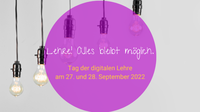 Unter dem Motto „Lehre! Alles bleibt möglich.“ teilen am diesjährigen Tag der digitalen Lehre fachübergreifend Lehrende und Studierende verschiedener Universitäten und Hochschulen ihre Erfahrungen und Ideen für ihre Lehre post Corona.