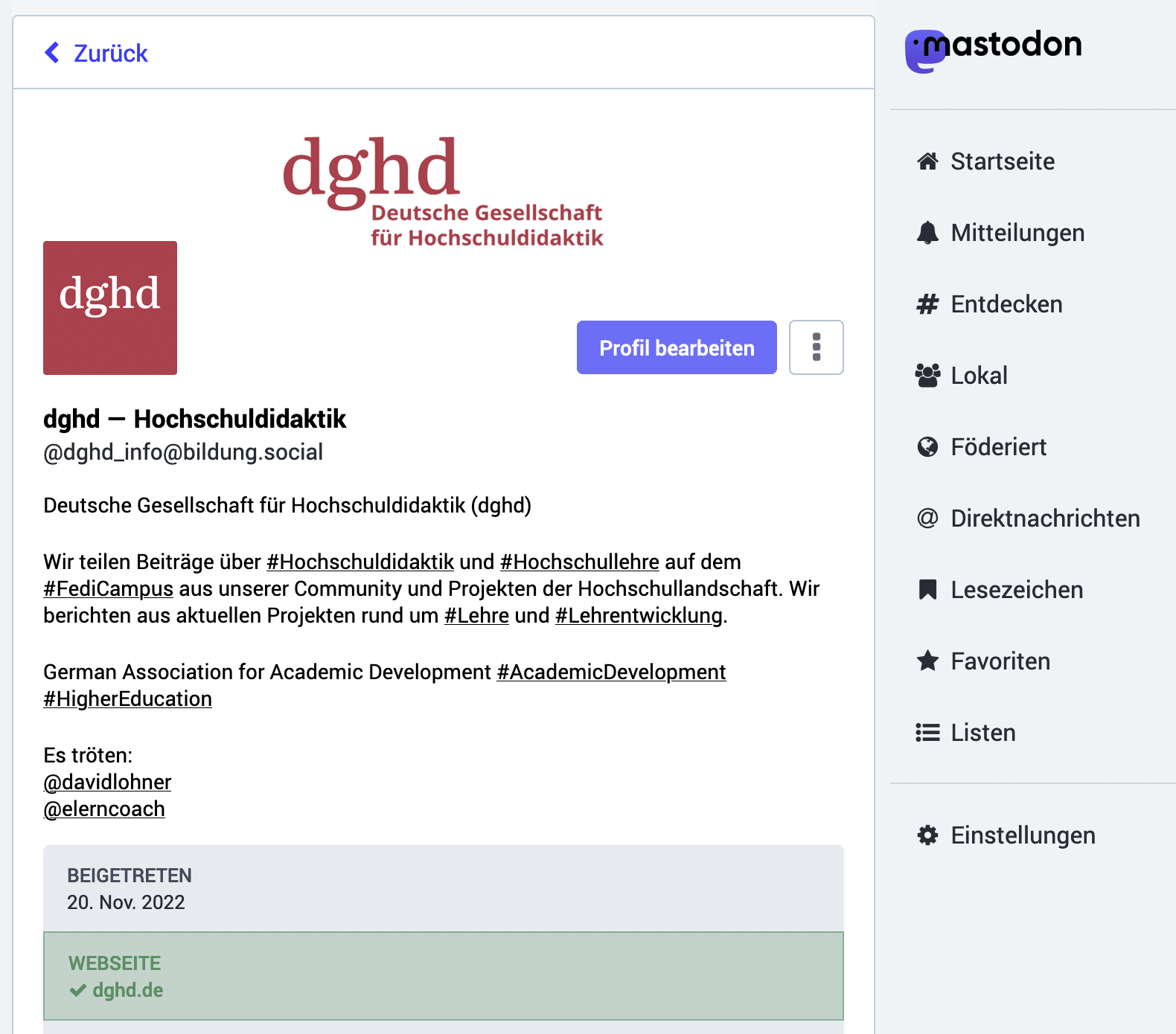 Die dghd ist in den Sozialen Medien vor allem auf Mastodon aktiv und betreibt unter https://higher-edu.social eine eigene Instanz gemeinsam mit der Gesellschaft für Medien in der Wissenschaft (GMW).